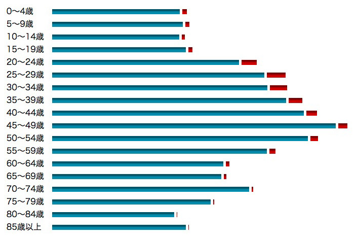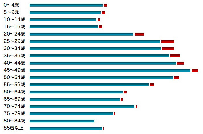 45〜49歳 807,165 778,067 29,098 (3.6 %)